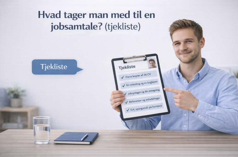Hvad tager man med til en jobsamtale? God forberedelse kan gøre en afgørende forskel. Her får du en overskuelig tjekliste med alt, du bør tage med til en jobsamtale i Danmark i 2026, så du møder op rolig, forberedt og professionel. Hvorfor er forberedelse til jobsamtalen vigtig? Til en jobsamtale vurderer arbejdsgiveren ikke kun dine … Læs mere