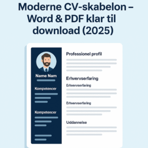 Download din moderne CV-skabelon i Word og PDF, tilpas den til din profil – og brug den som fast udgangspunkt i din jobsøgning i 2025.